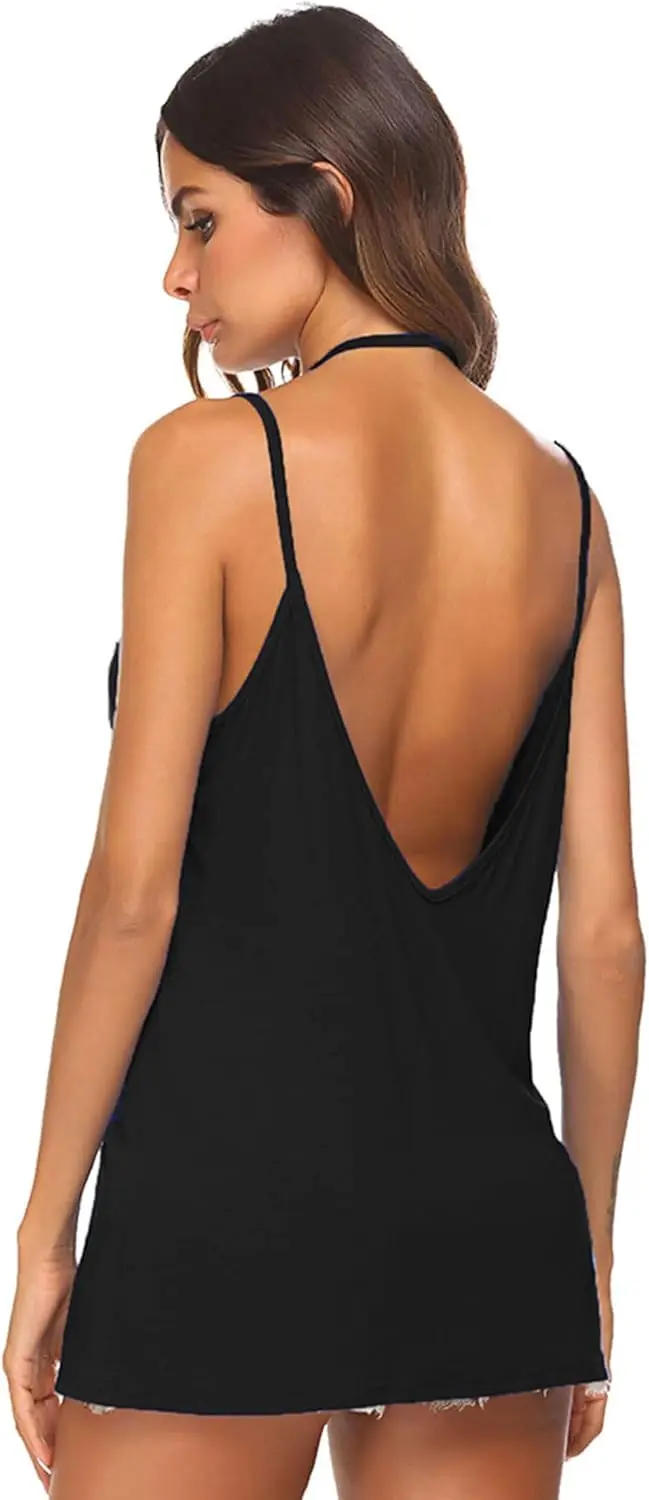 Women's Sexy V Neck Halter Spaghetti Strap Backless Cami Tank Top Casual Style 100% Cotton Anti-Pilling